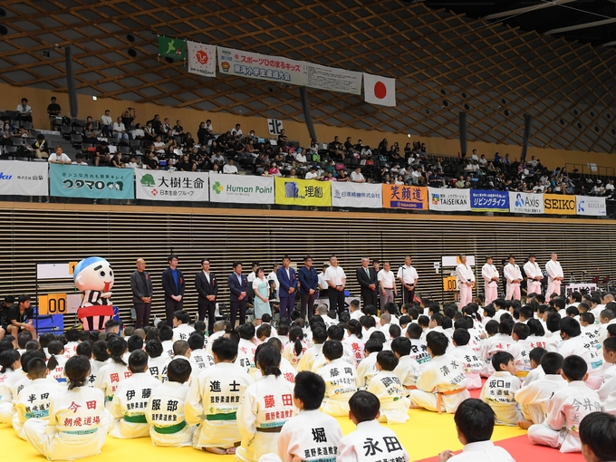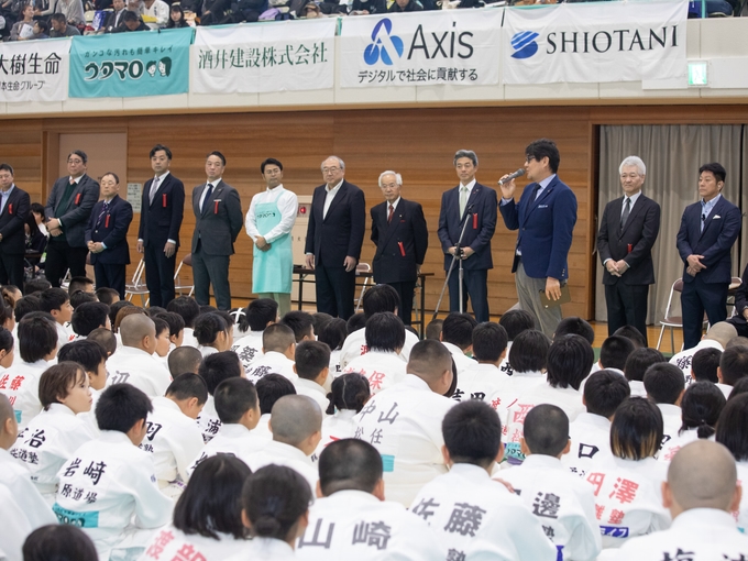 弊社協賛の上記大会が開催されました。大会には、秋田県から鹿児島県まで、16都道府県より647名の 親子が参加。試合以外にも特別講師・野村忠宏さんら5人の講師による柔道指導やコンテストなど大いに 楽しんでいただける大会となりました。