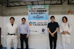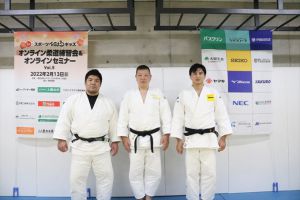 弊社協賛の上記オンラインイベントが開催されました。 北海道から九州と日本国内だけではなく、カナダ、シンガポールにお住まいの方にもご参加いただき、約70人の親子に楽しんでいただきました。 全日本代表選手を数多く育成している名門柔道場 朝飛道場館長であり、慶應義塾大学柔道部師範の朝飛大先生をメイン講師に、04年アテネ五輪柔道男子90kg級銀メダルの泉浩先生、12年ロンドン五輪柔道女子78kg級日本代表の緒方亜香里先生をお迎えし、笑顔あふれる楽しく充実した練習会となりました。