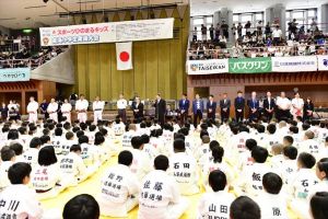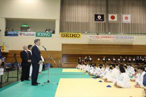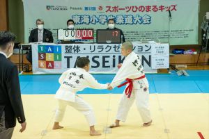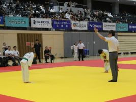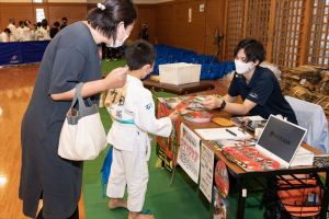 弊社協賛の上記大会が開催されました。大会には、秋田県から鹿児島県まで、16都道府県より647名の 親子が参加。試合以外にも特別講師・野村忠宏さんら5人の講師による柔道指導やコンテストなど大いに 楽しんでいただける大会となりました。