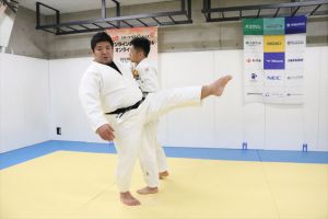朝飛大先生、志々目愛先生に柔道練習会の講師としてご参加いただきました。