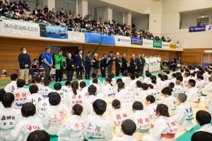 弊社協賛の上記大会が開催されました。大会には、秋田県から鹿児島県まで、16都道府県より647名の 親子が参加。試合以外にも特別講師・野村忠宏さんら5人の講師による柔道指導やコンテストなど大いに 楽しんでいただける大会となりました。