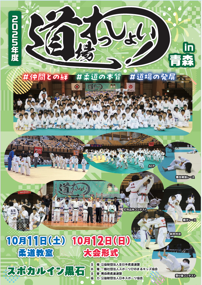 さて、暑さが残っていた9月から10月上旬にかけて、全日本柔道連盟主催、スポーツひのまるキッズ協会共催のイベント「道場わっしょい!in愛媛・in福岡・in青森」を3回連続で開催しました
