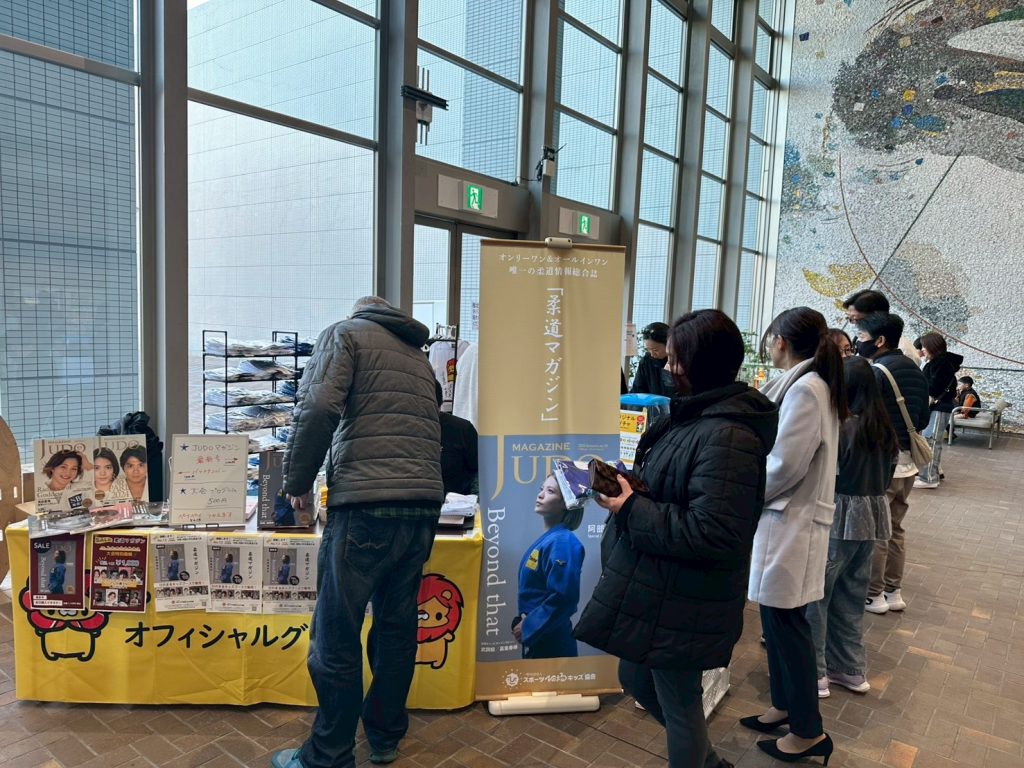 ここではひのまるキッズのオフィシャルグッズやサンリオグッズ、唯一の柔道雑誌の柔道マガジンを販売しています