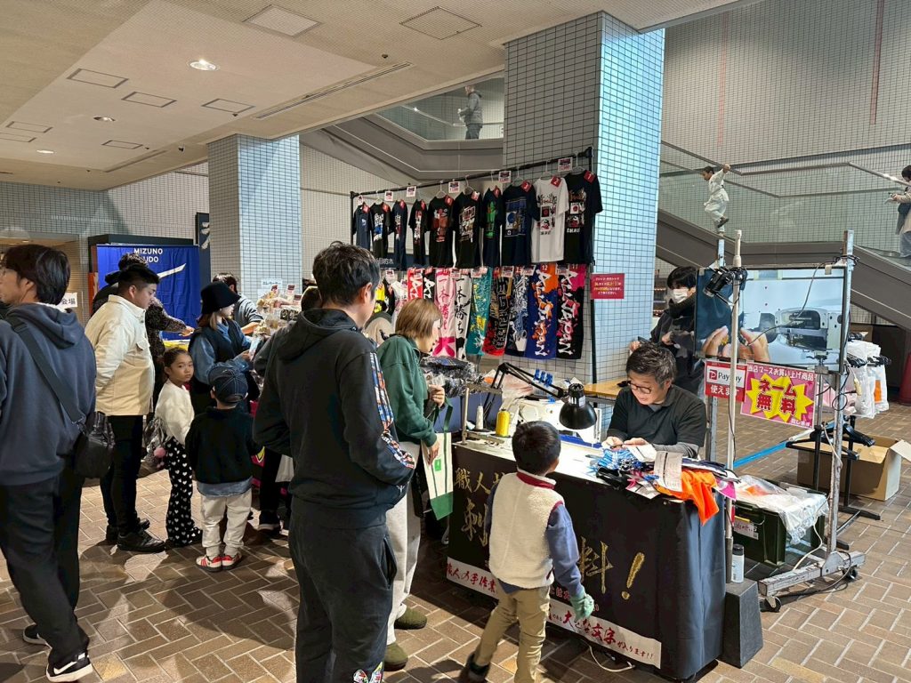 ここでは柔道衣やTシャツ、タオル等を販売しています!お買い上げの商品にそのばでフリーハンドで刺繍を施します!実は大会皆勤賞のタオルにも刺繍をしていただいています!