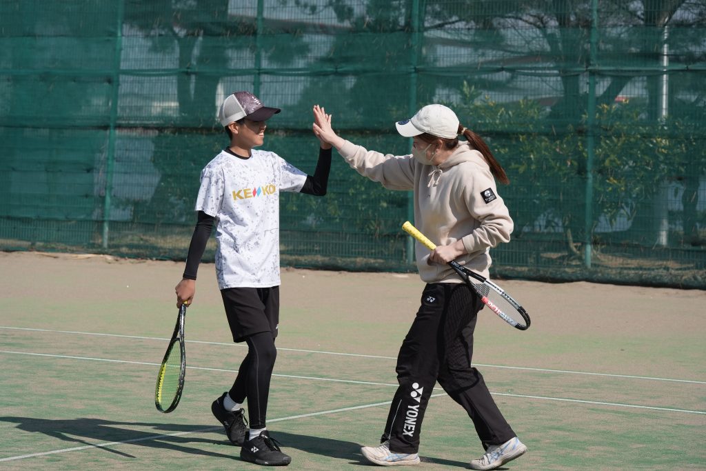 試合では点数が決まるとハイタッチや抱き合って喜びを分かち合っていたり、
