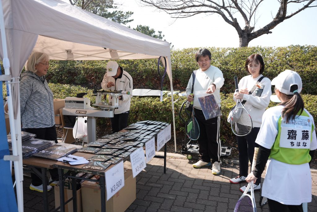 テニスショップワカウメブースでは、ガット張りやテニスグッズの販売をしていました。