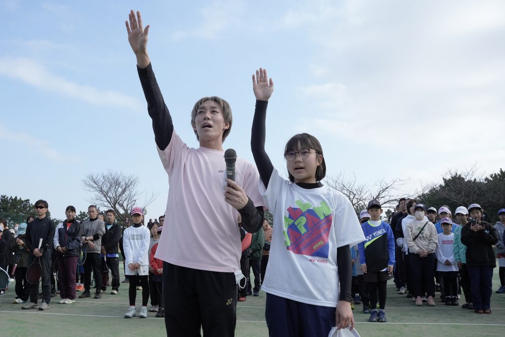 そして予定にはなかった木原先生とお手伝いで来ていた木更津総合高校テニス部の3名によるエキシビジョンマッチが開催されました。