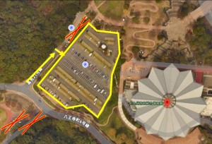 参加者駐車場につきましては黄色い枠内になります。