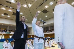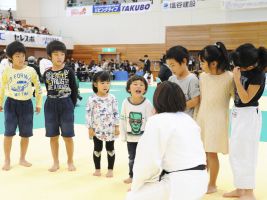 弊社協賛の上記大会が開催されました。大会には、秋田県から鹿児島県まで、16都道府県より647名の 親子が参加。試合以外にも特別講師・野村忠宏さんら5人の講師による柔道指導やコンテストなど大いに 楽しんでいただける大会となりました。