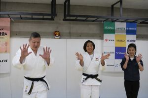 弊社協賛の上記オンラインイベントが開催されました。 東京都、神奈川県、埼玉県、千葉県、茨城県、山梨県、群馬県、栃木県の地域からご参加いただき、約80人の親子に楽しんでいただきました。全日本代表選手を数多く育成している名門柔道場 朝飛道場館長であり、慶應義塾大学師範の朝飛大先生をメイン講師にお迎えし、挨拶・返事・礼儀・感謝することの大切さを改めて学びました。 2016年リオデジャネイロ五輪銅メダルの山部佳苗先生と一緒に「払腰」や「大外刈」の一人打ち込みを みんなで練習。1人1人わかりやすく丁寧にご指導いただきました。