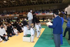 弊社協賛の上記大会が開催されました。新型コロナウイルスの感染拡大による2度の延期で開催自体が危ぶまれていた大会ですが、規模を縮小し、人数制限のために最終学年(6年生)のみの大会になりました。 試合は6年生男女軽量級と無差別の計4階級実施。162名の選手の熱戦が繰り広げられました。